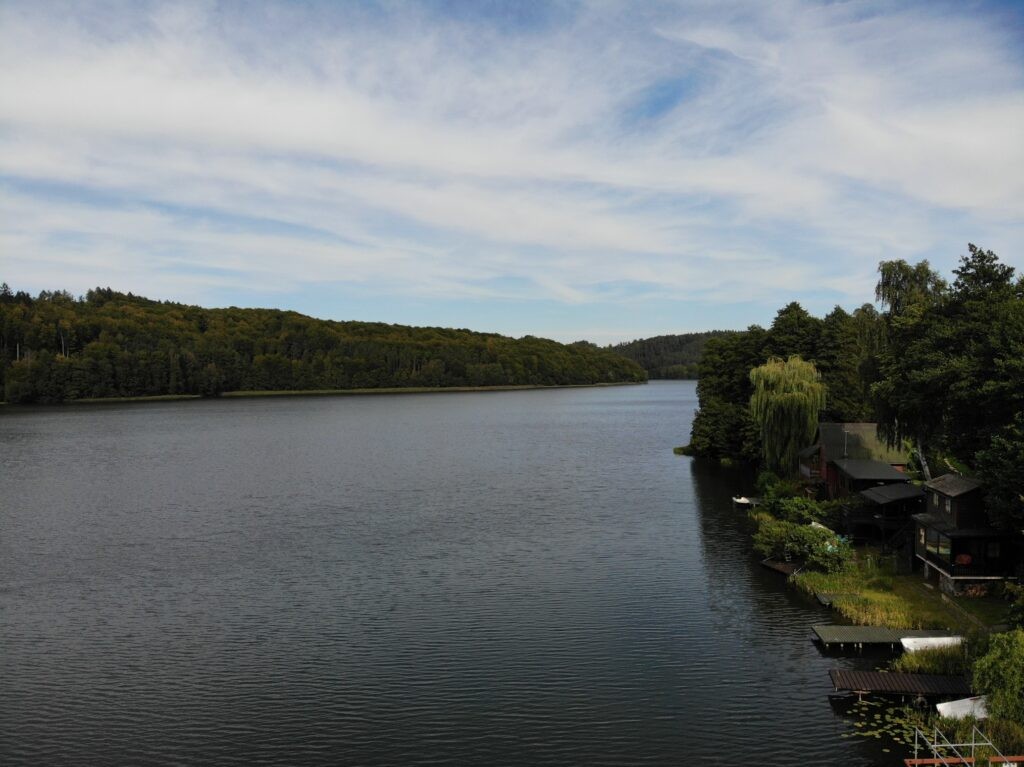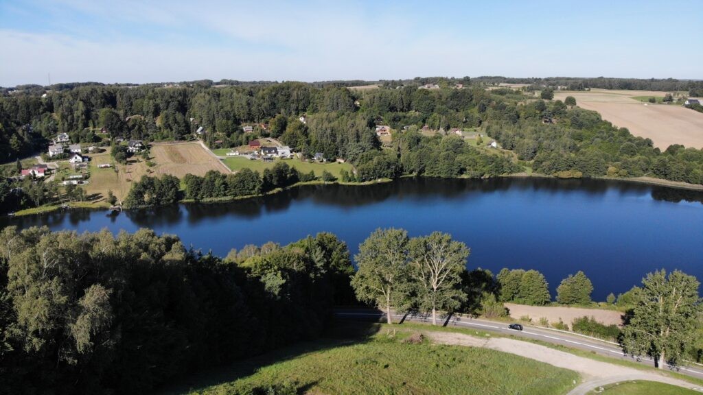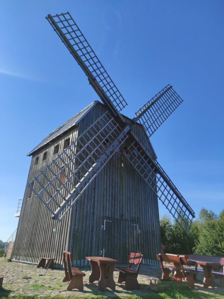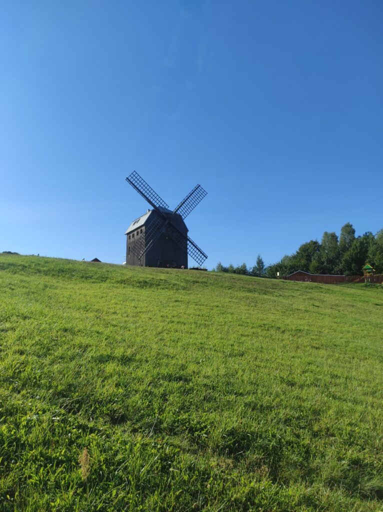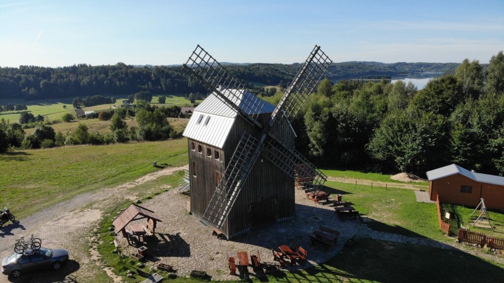 Zaraz po śniadaniu zabieramy się za zwiedzanie regionu Szwajcaria Kaszubska, gdzieś doczytałem że nazwano go tak ze względu na wzniesienia które kojarzą się ze Szwajcarią. Mieszkając w Beskidzie Niskim można śmiało stwierdzić ze to nasz region zdecydowanie bardziej przypomina Szwajcarie 🙂 Górki były bardzo mizerne, ale za to ozdobione pięknymi jeziorami i lasami. Jako pierwszy punkt odwiedzamy Wiatrak w Ręboszewie można tam bez problemu polatać dronem.