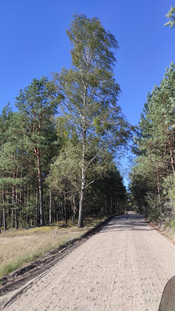 Zaraz po śniadaniu, ruszamy do Wdzydzkiego Parku Krajobrazowego, pogoda do jazdy idealna. Droga zawija pomiędzy jeziorami i lekkimi wzniesieniami cały czas towarzyszą też lasy. Czasem trafiamy na szutry, które nie raz zamieniają się w piach a 270 kg Varadero tańczy na nim nieporadnie. Doświadczenie z Podlasia przydało się i takie podłoże nie robi już na nas większego wrażenia.