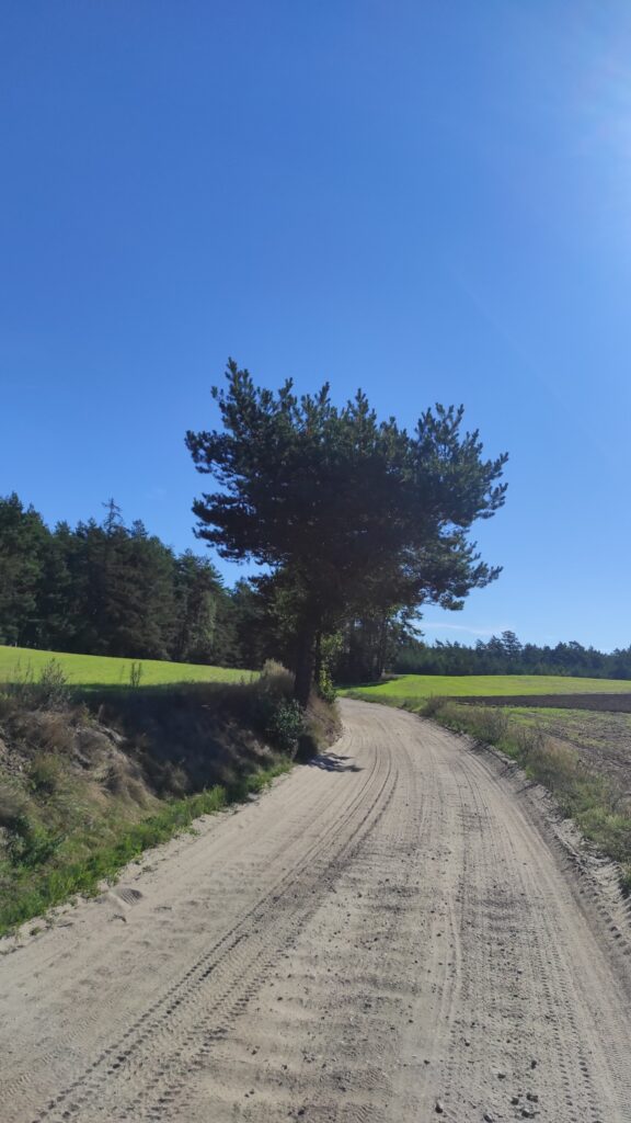 Kaszubski krajobraz bardzo nam się spodobał, zatrzymujemy się w Punkt widokowy rezerwat Lipno Lipenko znajduje się tam mała wieża z której rozpościera się widok na Jezioro Lipno. Sama droga do tego punktu biegnie cały czas lasem i drogą szutrową. Rosną borówki ale niestety grzybów brak.