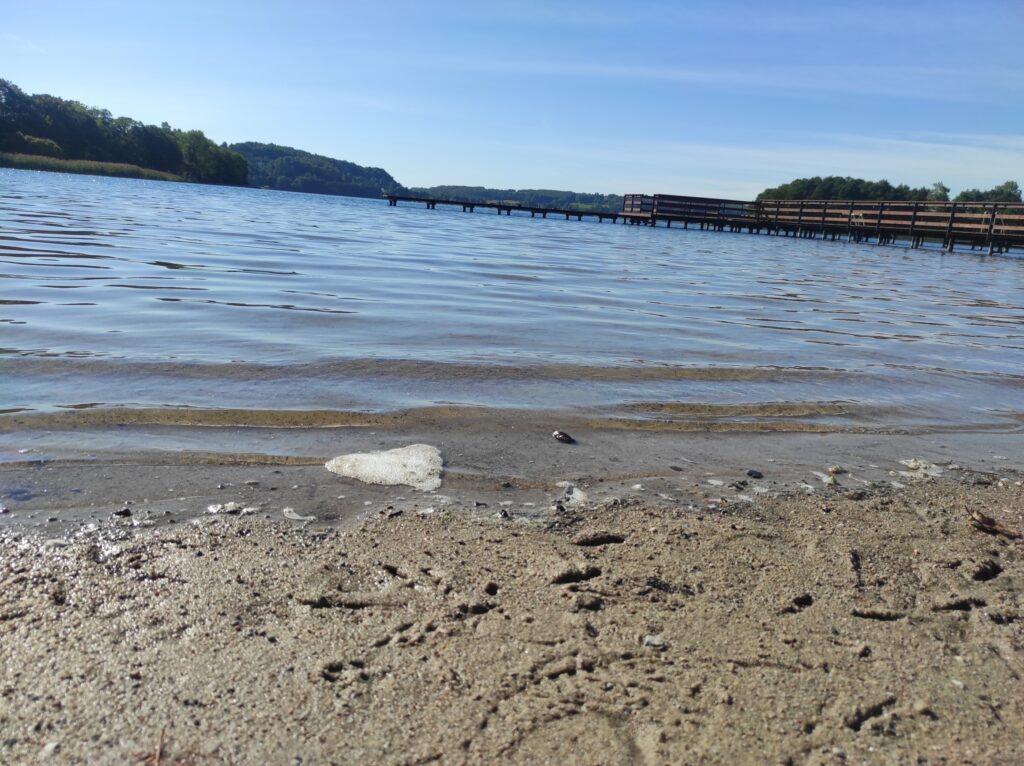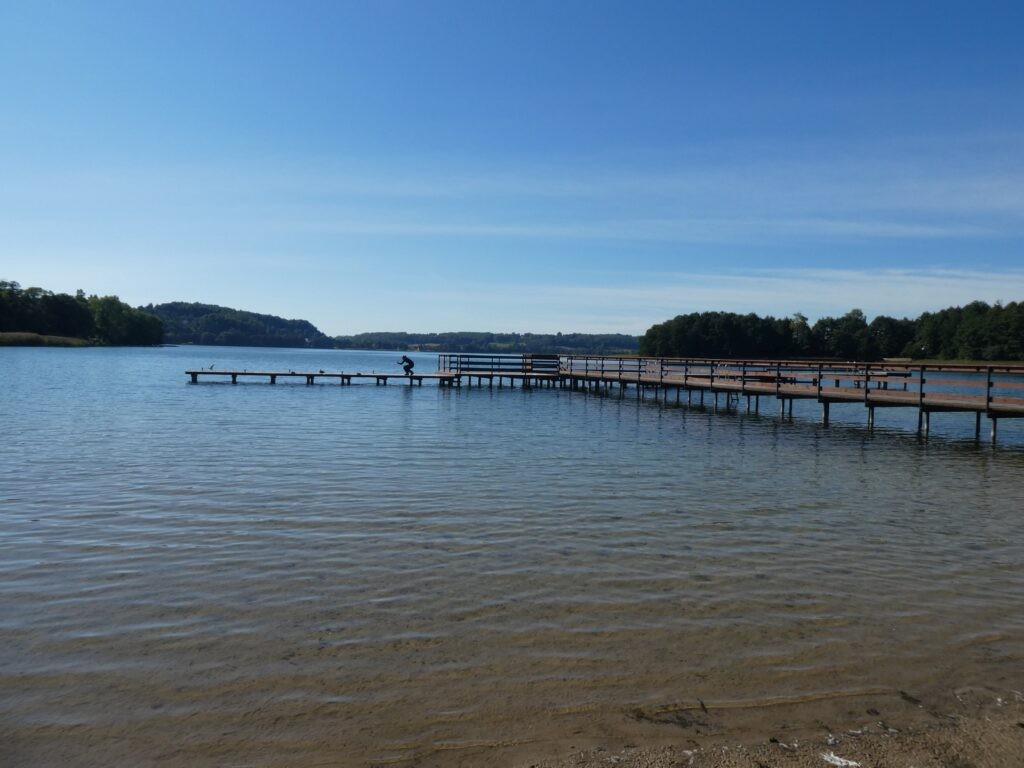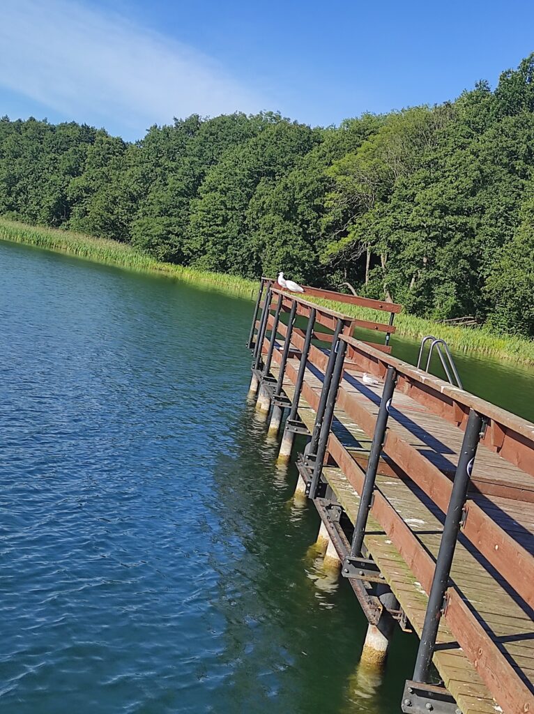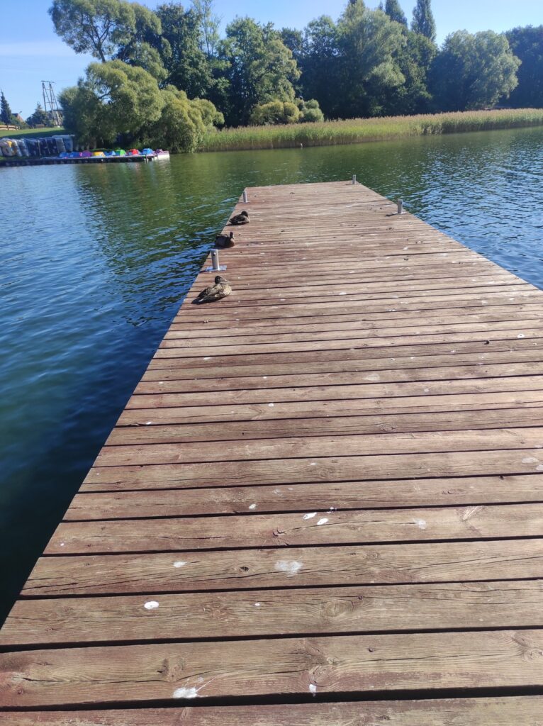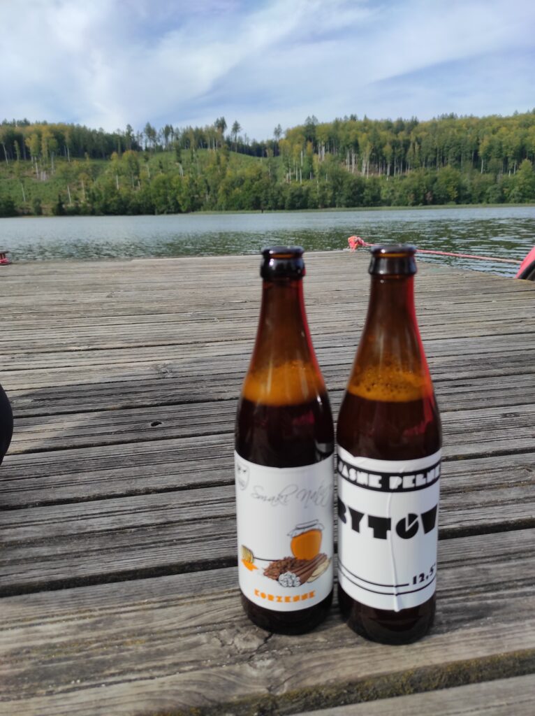 Ten dzień kończymy przy dobrym piwie na pomoście nad Jeziorem Ostrzyckim – karmiliśmy jeszcze wścibską dziką kaczkę która najwyraźniej chciała się z nami zaprzyjaźnić.