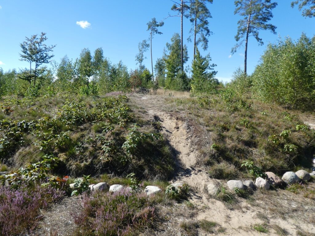 Pnąc się Drogą Kaszubką w górę bez większego planu co jakiś czas natrafiamy na kolejne fajne miejscówki. Dojeżdżamy do Rezerwatu przyrody Żurawie Błota, gdzie przez przypadek i słabo oznaczoną trasę przeprawiamy się lasem do miejscowości Mirachowo. Droga bardzo często zmienia się z asfaltowej w szutrowa, leśną nie wiadomo gdzie jest legalnie a gdzie nie – skąd ja to znam 🙂